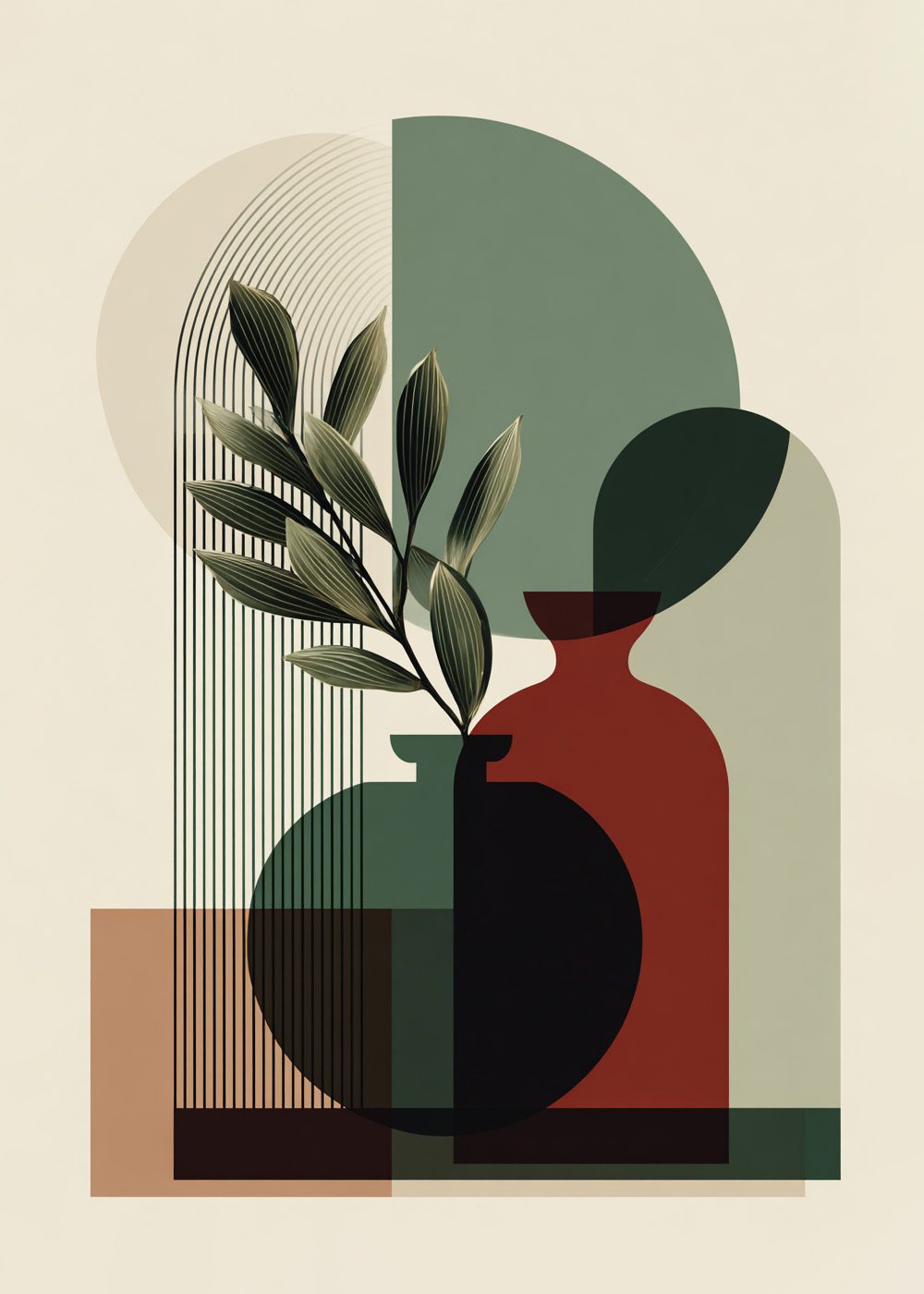 En stilren abstrakt poster som kombinerar organiska former, bladmotiv och grafiska linjer i harmoniska gröna och jordnära toner. Inspirerad av still life och modern design skapar denna poster ett lugnt men uttrycksfullt intryck. Passar perfekt i vardagsrum, kök eller hall och kompletterar både modern och skandinavisk inredning. Ett tidlöst konstverk som ger rummet karaktär utan att ta över.