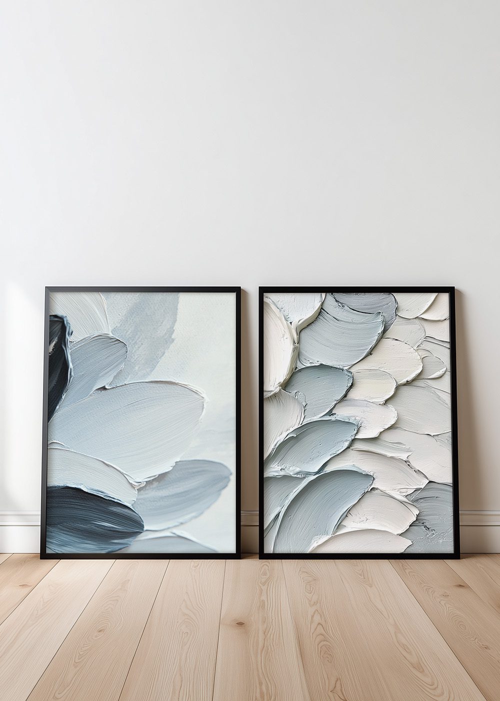 Blue Layers Posterpaket erbjuder två vackra abstrakta posters med mjuka former och tydliga penseldrag. Dessa konstmotiv skapar en modern och harmonisk känsla som passar utmärkt för minimalistisk inredning. De lugna tonerna i blått, grått och beige bidrar till en stilren och balanserad look, perfekt för vardagsrummet, sovrummet eller kontoret.