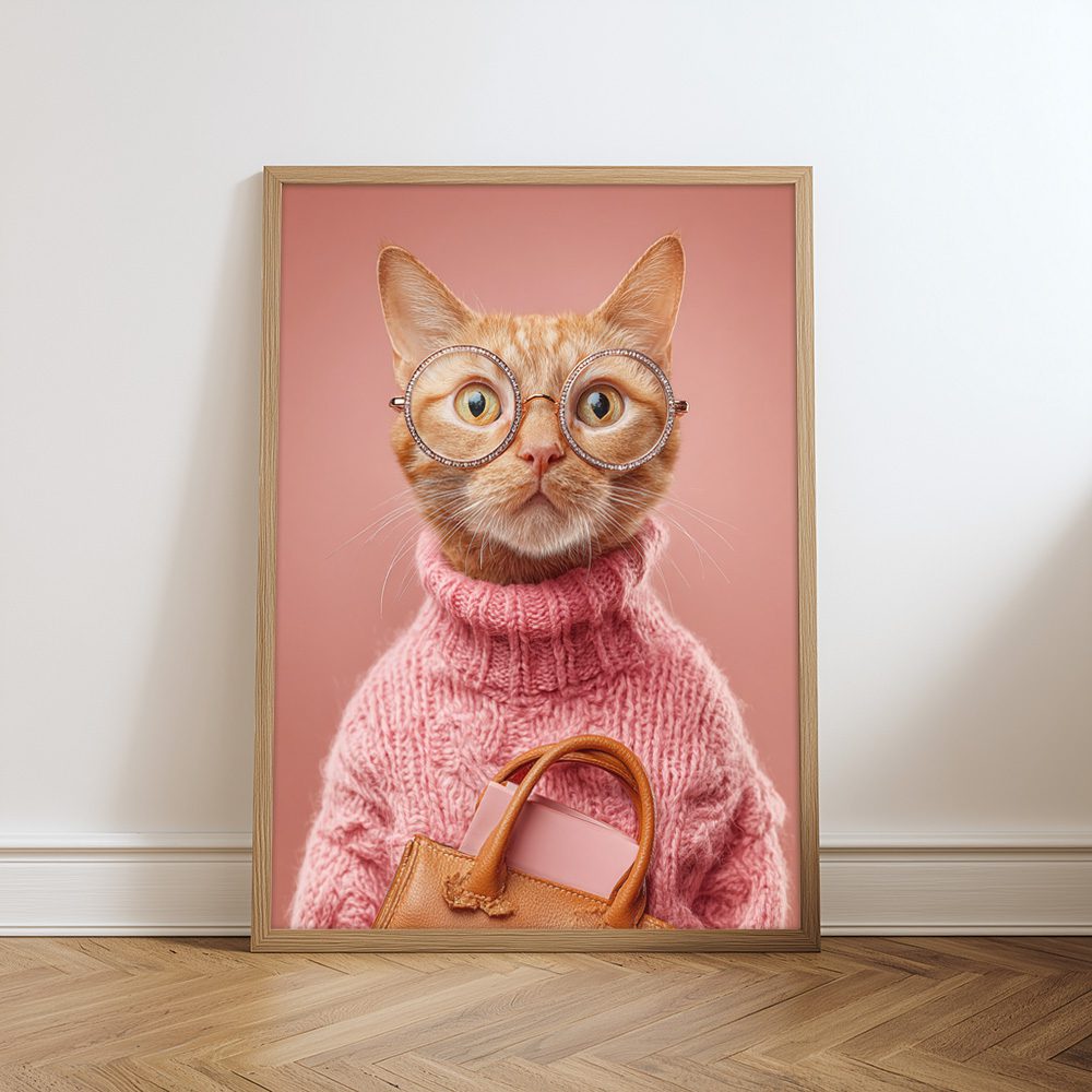 Nerdy Chic Cat är en varm och charmig poster som direkt skapar en känsla av trygghet och intelligens. Katten bär stora glasögon och en mjuk stickad tröja, vilket ger ett lekfullt men sofistikerat uttryck. Perfekt för den som vill skapa en inbjudande och personlig atmosfär. Postern passar utmärkt i barnrum, hemmakontor eller kreativa miljöer där värme och karaktär står i fokus.