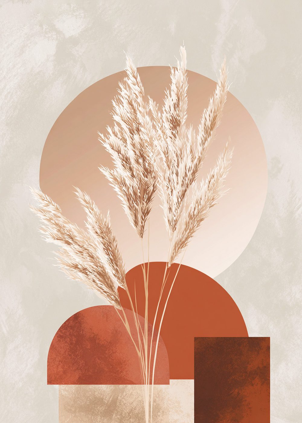 Pampas Harmoni är en stilren och mjuk poster som kombinerar naturligt pampasgräs med grafiska former i varma terrakotta- och sandtoner. Designen skapar ett lugnt och balanserat uttryck som passar perfekt i skandinaviska, bohemiska och moderna hem. En tidlös väggdekoration som ger rummet värme och harmoni utan att ta över.