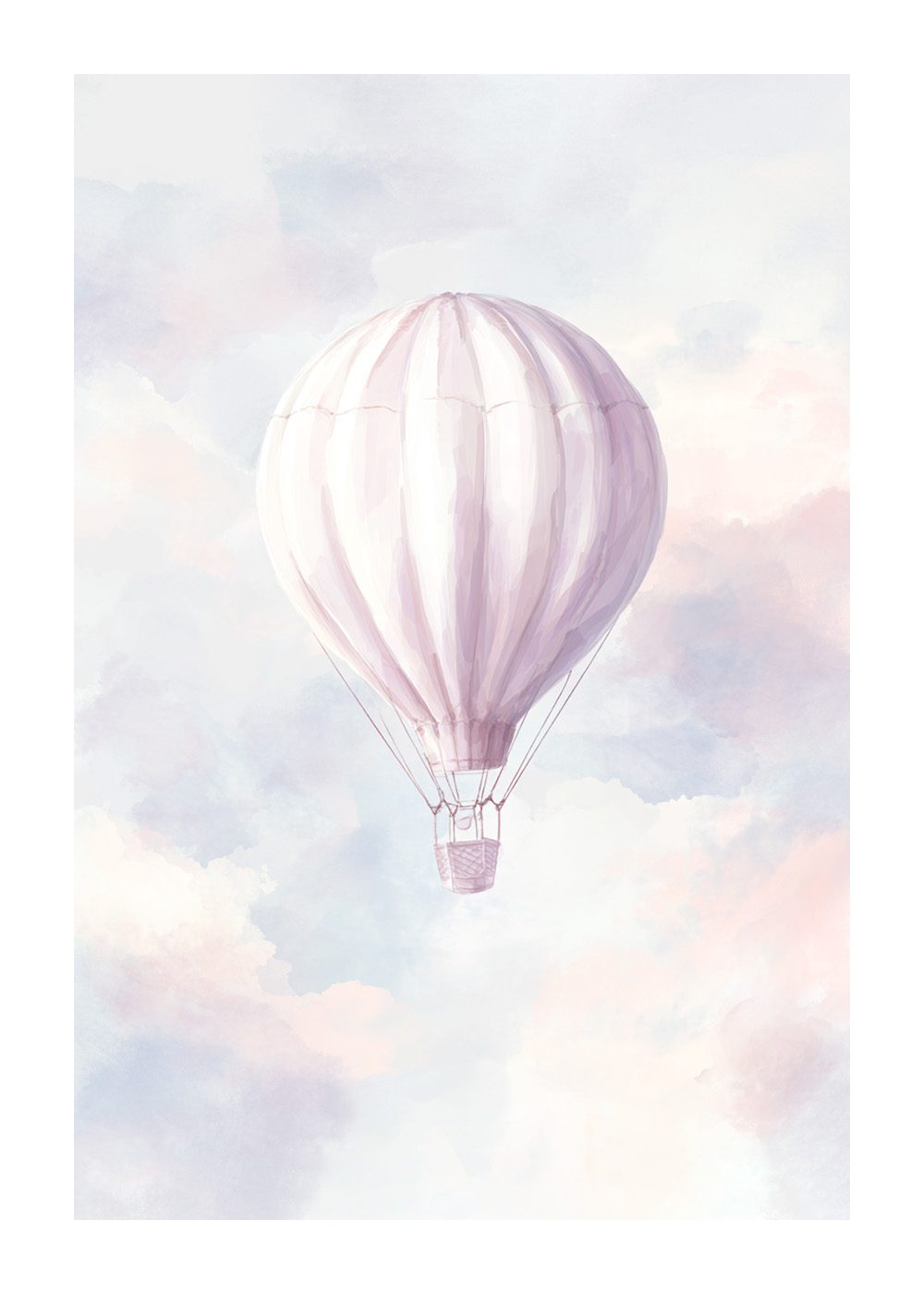 Pastell Luftballong svävar i rosa och blå toner, perfekt för barnrum. Skapa äventyr och fantasi ovanför sängen med denna trendiga poster.