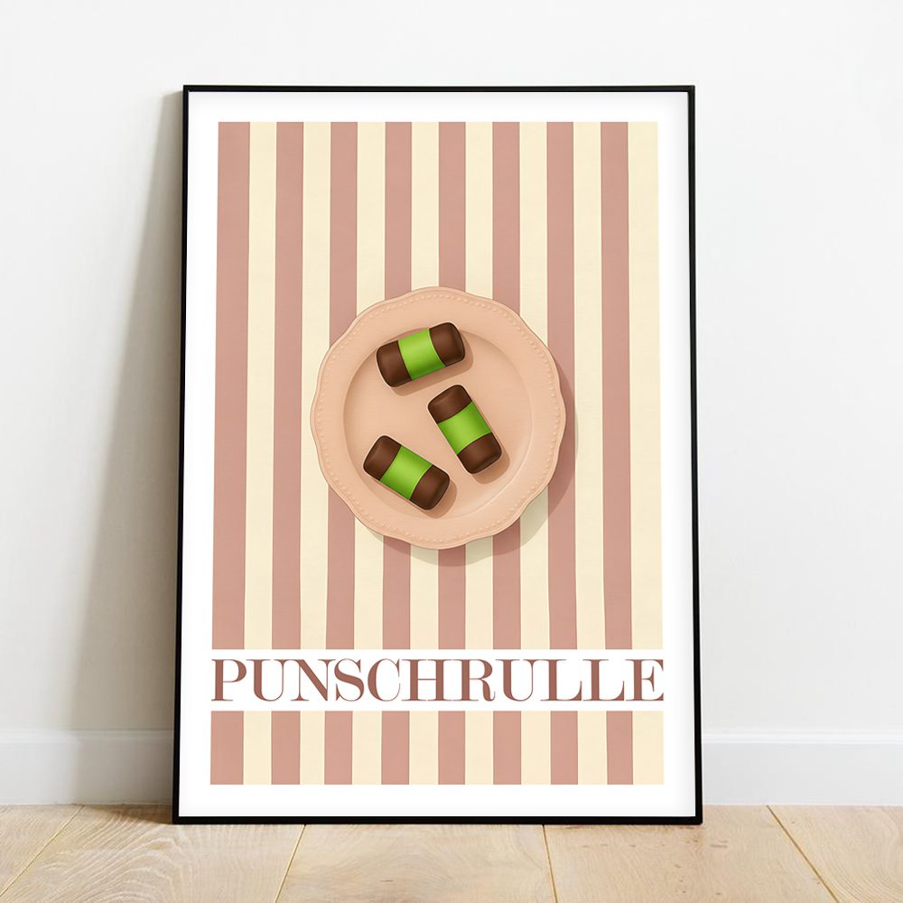 Fånga känslan av klassiskt konditorihantverk med denna eleganta poster inspirerad av den ikoniska dammsugaren i stilren design. Denna poster lyfter fram en av Sveriges mest charmiga konditoriklassiker mot en mjuk rosabeige, randig bakgrund – en subtil nostalgikick för alla fikaälskare.